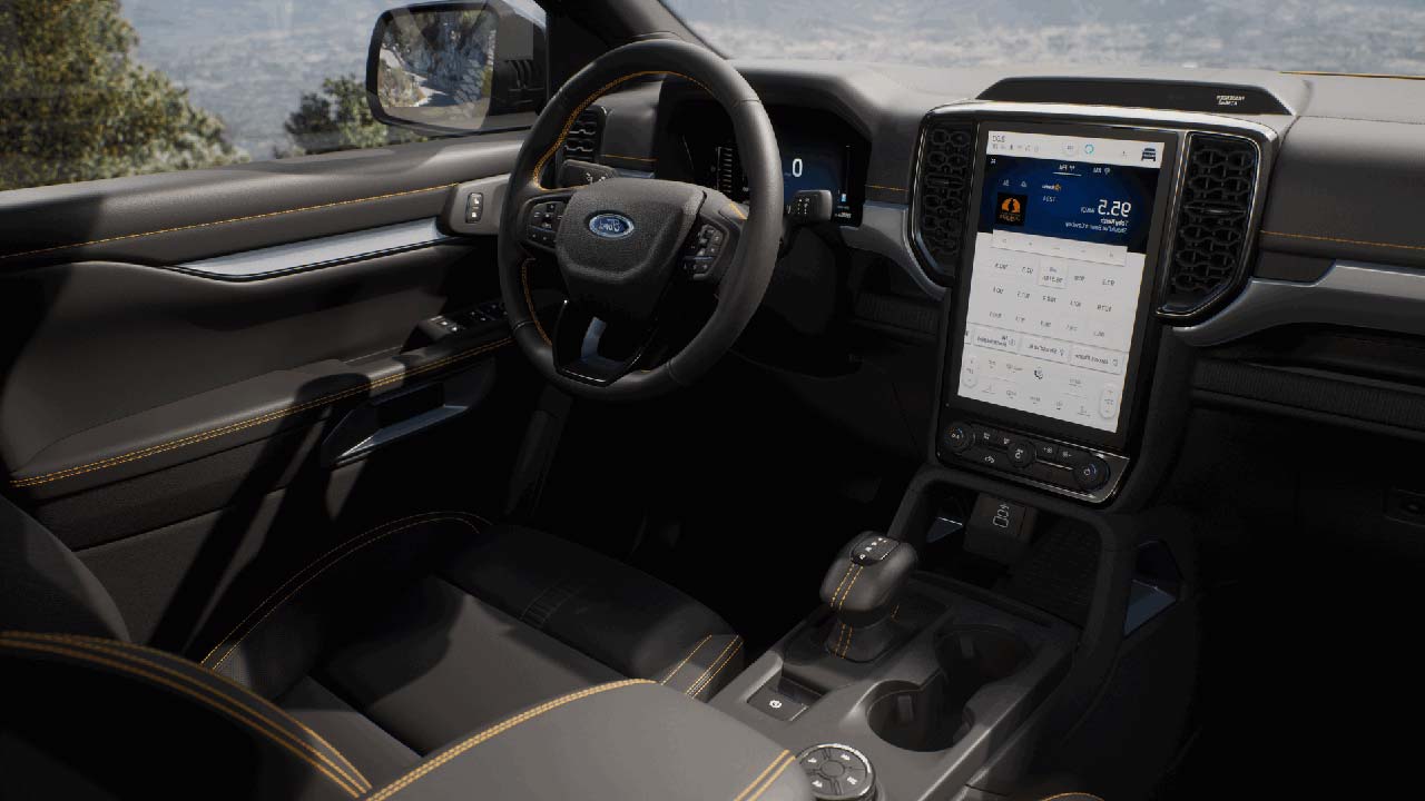 Στο εσωτερικό, το κύριο χαρακτηριστικό της καμπίνας είναι η κεντρική ψηφιακή οθόνη αφής 12 ιντσών με κορυφαία συνδεσιμότητα Ford SYNC 4, σύστημα πλοήγησης και ενσωματωμένο modem. Επιπρόσθετα, η συγκεκριμένη έκδοση προτάσσει πλούσιο εξοπλισμό και σε ότι αφορά τα συστήματα ασφάλειας και υποβοήθησης οδήγησης, όπως το αυτορρυθμιζόμενο σύστημα σταθερής ταχύτητας (Adaptive Cruise Control), το σύστημα επιτήρησης τυφλών σημείων (BLIS), η αυτόματη ενεργοποίηση φρένων κατά την όπισθεν με Traffic Alert και ο φωτισμός ζωνών οχήματος 360 μοιρών (Zone Lighting).