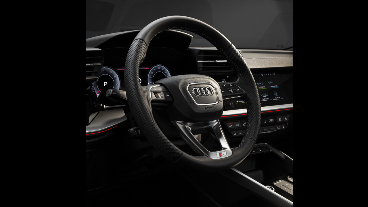 Στο εσωτερικό του το Audi A3 Sedan συνεχίζει στο ίδιο μοντέρνο και δυναμικό “μοτίβο”. Με τις έντονες ακμές να το χαρακτηρίζουν, το ταμπλό έχει σχεδιαστεί βάζοντας τον οδηγό στο επίκεντρο των εξελίξεων, με στάνταρ ψηφιακό πίνακα πληροφοριών 10,25 ιντσών για τα μάτια του αλλά και μια κεντρικά τοποθετημένη οθόνη αφής για το σύστημα πολυμέσων με διάσταση από 10,1 έως και 12,3 ίντσες. Το σύστημα infotainment της Audi βρίσκεται πλέον στην τρίτη γενιά του και χρησιμοποιεί επεξεργαστή δέκα φορές ισχυρότερο έναντι της προηγούμενης γενιάς. Έτσι προσφέρει στους επιβαίνοντες υψηλά επίπεδα συνδεσιμότητας όπως και στο ίδιο το αυτοκίνητο, μέσω υπηρεσιών Car-to-X. Επιτρέπει παράλληλα και έναν βαθμό ελέγχου απομακρυσμένα, ενώ μπορεί να αποθηκεύσει τις προτιμήσεις έως και έξι διαφορετικών χρηστών.