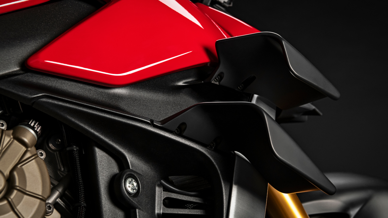 Το νέο Streetfighter, είναι μια μοτοσυκλέτα πιστή στο όνομά της, ένα όνομα που ορίζει μια ολόκληρη κατηγορία γυμνών μοτοσυκλετών επιδόσεων. Επί της ουσίας έχουμε να κάνουμε με την γυμνή έκδοση του 4κύλινδρου Panigale, του κορυφαίου superbike της Ducati και αυτό με λίγα λόγια σημαίνει καταιγιστικές επιδόσεις, ηλεκτρονικά συστήματα στην αιχμή της τεχνολογίας και συνολική απόδοση που δεν έχει να ζηλέψει κάτι από την κατηγορία των superbike. Σχεδιαστικά, αν μπορεί να ξεχωρίσει κάτι από την αιχμηρή και συνάμα πολεμική σιλουέτα της μοτοσυκλέτας είναι οι τέσσερις μικρές αεροτομές δύο σε κάθε μεριά που βελτιώνουν την ευστάθεια της μοτοσυκλέτας στις υψηλές ταχύτητες.