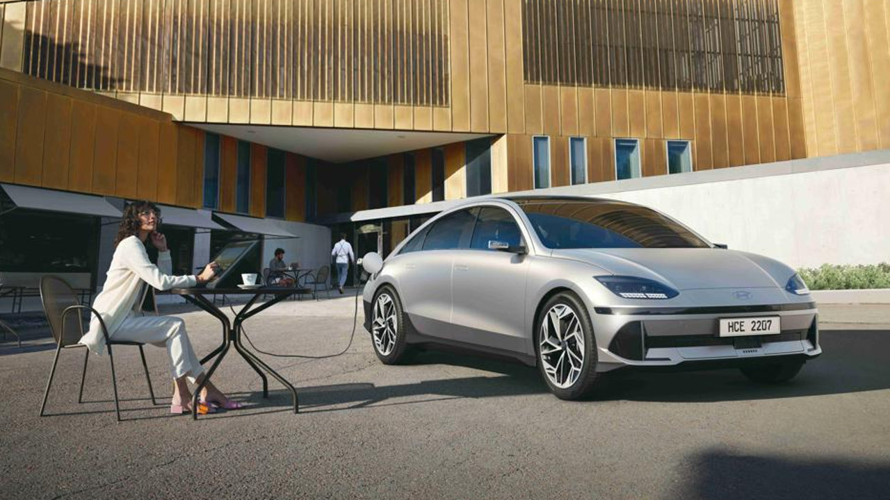 Το Ioniq 6 παρέχει την λειτουργία vehicle-to-load (V2L) που επιτρέπει στους πελάτες να φορτίζουν οποιεσδήποτε ηλεκτρικές συσκευές από πρίζα schuko 230V —ιδανική για τροφοδοσία απαραίτητων συσκευών κατά τη διάρκεια διακοπής ρεύματος, κατασκήνωσης ή υπαίθριων έργων. Η λειτουργία V2L ενεργοποιείται είτε από την εξωτερική θύρα φόρτισης, χρησιμοποιώντας μετασχηματιστή με απόληξη υποδοχής πρίζας schuko, είτε εσωτερικά από μια schuko πρίζα ενσωματωμένη κάτω από το πίσω κάθισμα για τη φόρτιση φορητών υπολογιστών, τηλεφώνων και άλλων συσκευών.