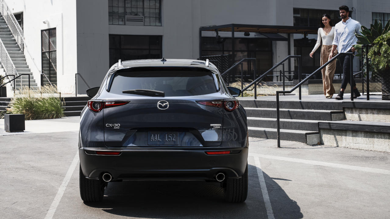 Στιλιστικά και έναντι των υπόλοιπων εκδόσεων το τουρμπάτο CX-30 ξεχωρίζει από τις ζάντες των 18 ιντσών που είναι βαμμένες σε μαύρο χρώμα, όπως και οι εξωτερικοί καθρέπτες. Ελαφρώς μεγαλύτερες σε διάμετρο είναι και οι στρογγυλές απολήξεις της εξάτμισης, ενώ στο πίσω μέρος βλέπουμε στο όνομα του SUV της Mazda να έχει προστεθεί και το συνθετικό “TURBO”. Ο εξοπλισμός του μοντέλου που θα αποτελεί λογικά και την κορυφαία έκδοση του CX-30 στις Η.Π.Α. παρουσιάζεται ιδιαίτερα πλούσιος και περιλαμβάνει μεταξύ άλλων και ηχοσύστημα της Bose με 12 συνολικά ηχεία.
