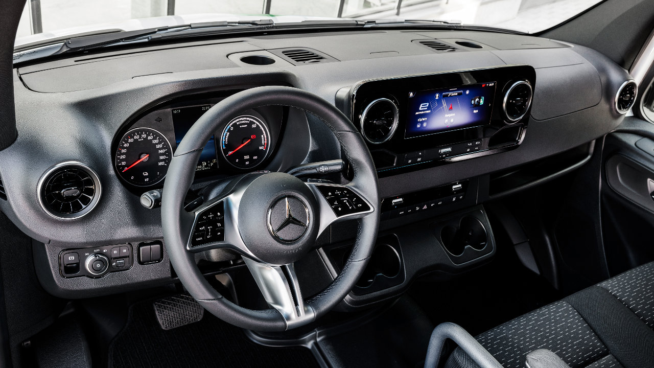 Το νέο eSprinter περιλαμβάνει στον βασικό εξοπλισμό του την τελευταία γενιά συστήματος πολυμέσων MBUX (Mercedes Benz User Experience) με οθόνη 10,25 ιντσών με ακόμη μεγαλύτερη υπολογιστική ισχύ και εξελιγμένη πλοήγηση.