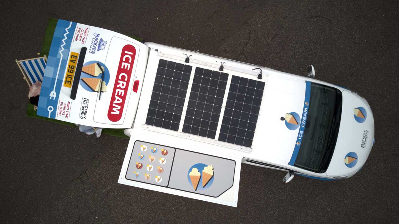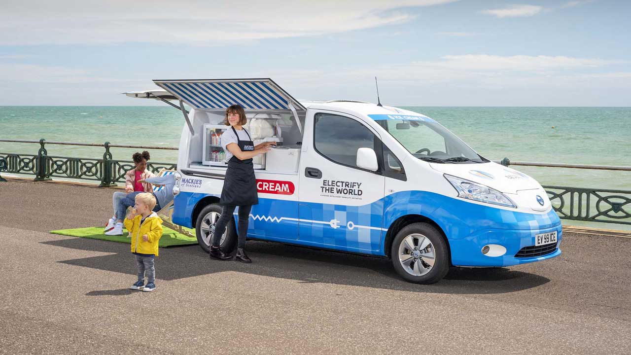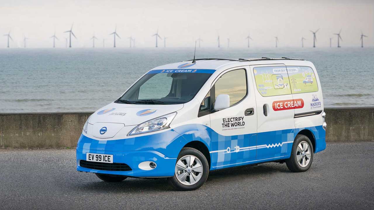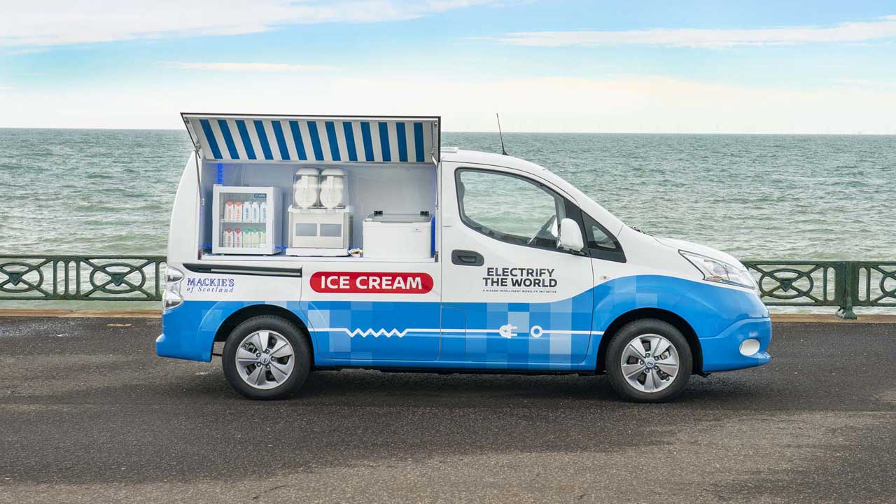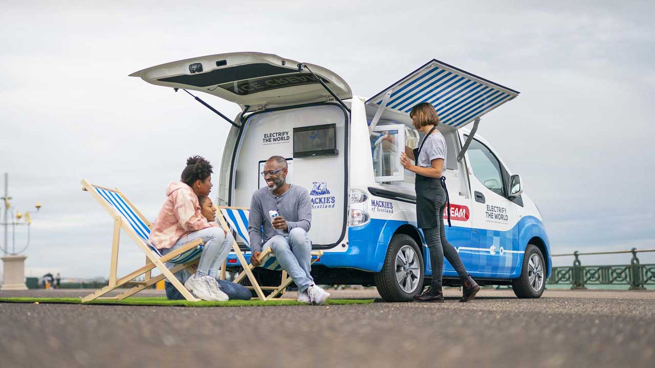 Η Nissan είναι μία εταιρεία πρωτοπόρος σε θέματα ηλεκτροκίνησης και το αποδεικνύει ακόμη μία φορά, κατασκευάζοντας ένα μοντέλο διαφορετικό από τα άλλα. Ο λόγος για το “παγοτατζίδικό” της, το οποίο για να γίνει πραγματικότητα συνεργάστηκε με την Mackie’s of Scotland, μια οικογενειακή επιχείρηση γαλακτοπαραγωγής και παγωτού, που τροφοδοτείται με ενέργεια από ανανεώσιμες πηγές, όπως ο άνεμος και ο ήλιος.