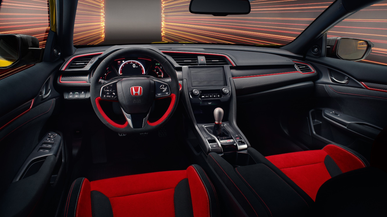 Στο εσωτερικό το βλέμμα πέφτει στα κόκκινα bucket καθίσματα και το κόκκινο-μαύρο τιμόνι, το τελευταίο επενδυμένο με Alcantara, αλλά και στη νέα μπίλια του επιλογέα ταχυτήτων σε στυλ “σταγόνας”. Από τον εξοπλισμό απουσιάζουν τόσο το σύστημα πολυμέσων όσο και το κλιματιστικό. Παράλληλα, το ηχομονωτικό υλικό σε οροφή, πίσω πόρτα, εμπρός προφυλακτήρα και ταμπλό έχει περιοριστεί. Τα πίσω καθίσματα παραμένουν για να διατηρήσει το Type R μέρος από τη χρηστικότητα του, ενώ το κέρδος από την αφαίρεση των παραπάνω ανέρχεται στα 47 κιλά.