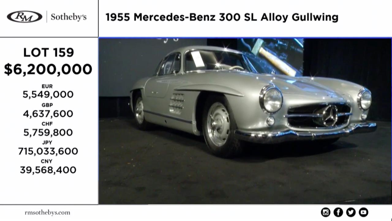 Μία ξεχωριστή περίπτωση δημοπρατήθηκε χθες στην Αριζόνα των ΗΠΑ, από τον οίκο RM Sotheby’s. Πρόκειται για μία σπάνια Gullwing, σε άριστη κατάσταση μηχανικά και εμφανισιακά, με αμάξωμα κατασκευασμένο από αλουμίνιο, όπως συνέβαινε στην αγωνιστική εκδοχή της, W194, γεγονός που της αφαιρεί εκατοντάδες κιλά σε σχέση με τις υπόλοιπες, καθώς το βάρος της ανέρχεται στα 1.200 κιλά. Επιπλέον ο κινητήρας της αποδίδει 25 περισσότερους ίππους από τις κλασικές 300 SL. Συνολικά κατασκευάστηκαν 280 Gullwing με κινητήρα αυξημένης απόδοσης και αλουμινένιο αμάξωμα και ελάχιστες εξ’ αυτών επιζούν σήμερα.