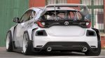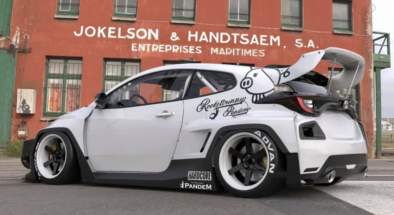Με το neo κιτ της Rocket Bunny Tra-Kyoto το GR Yaris αποκτά μια σαφώς πιο πολεμική εικόνα που μπορεί να συγκριθεί μόνο με πραγματικό WRC. Ο εμπρός προφυλακτήρες έχει ενισχυθεί με τεράστια αεροδυναμικά βοηθήματα, οι θόλοι των τροχών έχουν φουσκώσει ανάλογα, ενώ στο πίσω μέρος την παράσταση κλέβει -αν μπορεί να ειπωθεί κάτι τέτοιο- η τεράστια ρυθμιζόμενη αεροτομή.