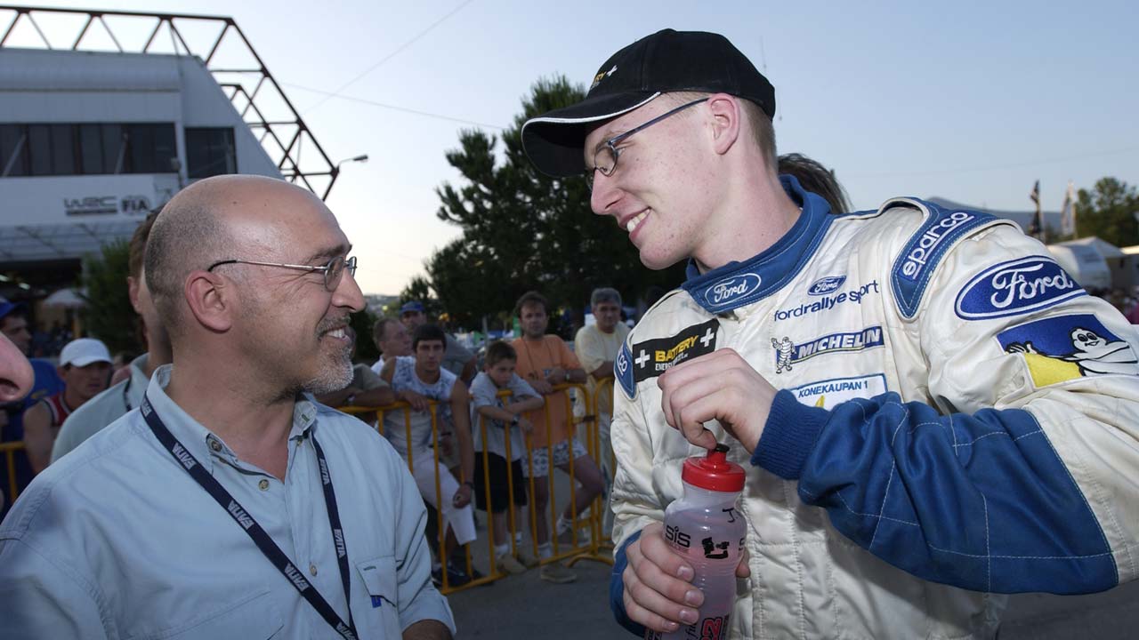> Επέλεξα μία φωτογραφία μου από το 50ο Ράλι Ακρόπολις του 2003 με τον πρωτάρη τότε Jari-Matti Latvala. Του είχα πει τότε, όντας πιτσιρικάς 18 χρονών ο Jari-Matti, ότι θα γίνει σπουδαίος (το είχα αυτό με την «ανάγνωση» ταλέντων, ανέκαθεν). Και έγινε. Μια ματιά στην πορεία του, τα εξηγεί όλα. Το καπέλο που φοράει, το «παρέλαβα» από το δωμάτιό του στο “Γαλήνη” των Καμένων Βούρλων μετά τον αγώνα και κοσμεί μέχρι και σήμερα την πλούσια συλλογή μου από memorabilia του WRC.