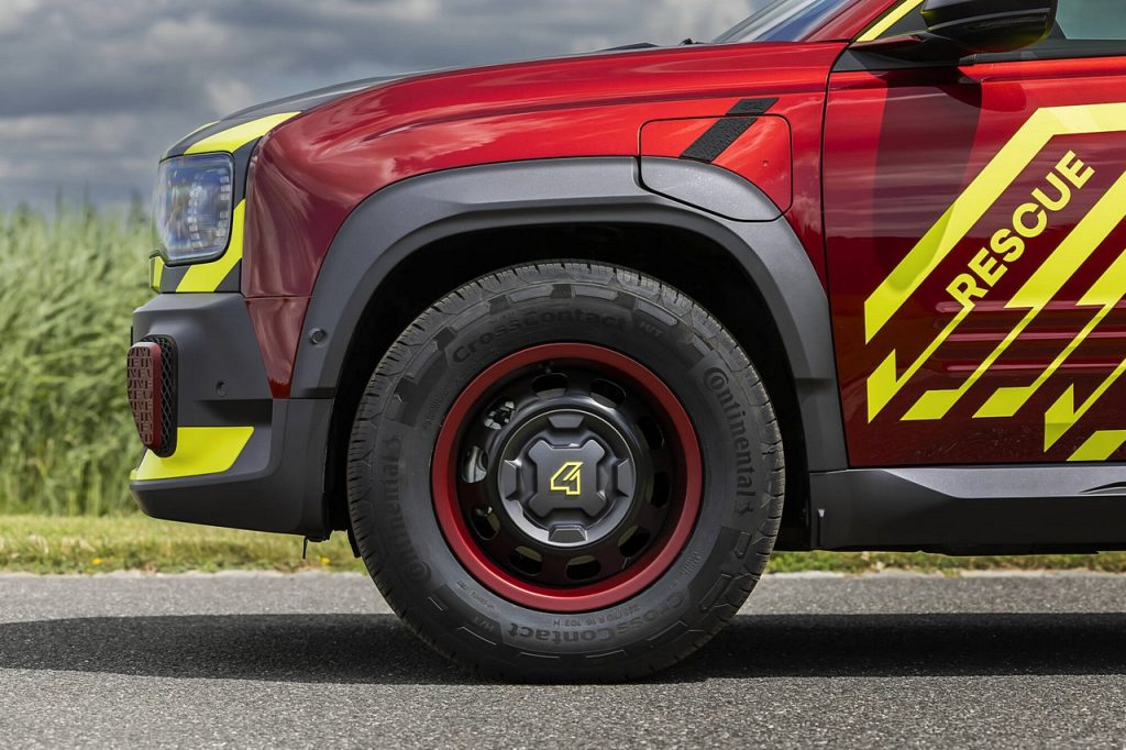 Το Vision 4rescue διαθέτει στιβαρό και υπερυψωμένο αμάξωμα κατά 15 χλστ. σε σχέση με τη στάνταρ έκδοση του ηλεκτρικού μοντέλου. Διαθέτει επίσης έναν δεύτερο ηλεκτροκινητήρα στον πίσω άξονα για μόνιμη τετρακίνηση, λύση που του δίνει τη δυνατότητα να εκτελεί την αποστολή του σε δύσβατο έδαφος.