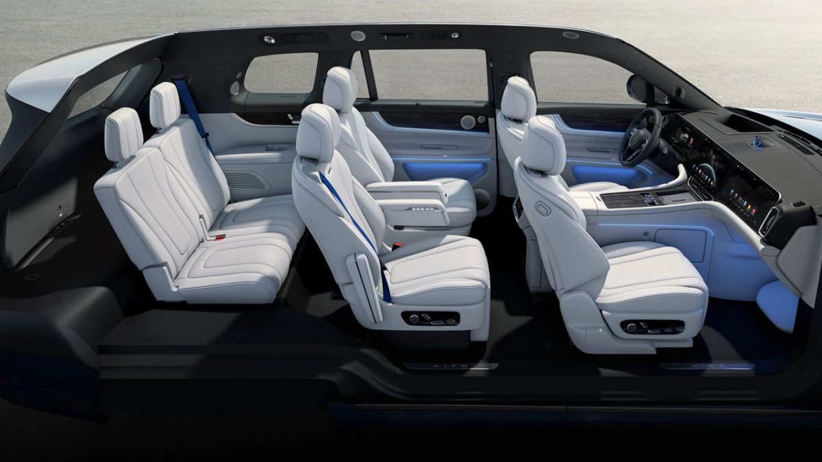 Στο εσωτερικό του SERES 5 ξεχωρίζουν τα κορυφαία υλικά σε κάθε επιφάνεια, το δέρμα Nappa στα καθίσματα, αλλά και η πανοραμική οροφή 85 ιντσών. Το ψηφιακό περιβάλλον αποτελείται από μία οθόνη σε ρόλο πίνακα οργάνων μεγέθους 12,3 ιντσών πίσω από το τιμόνι, ενώ υπάρχει και η οθόνη 15,6 ιντσών στο κέντρο του ταμπλό.
