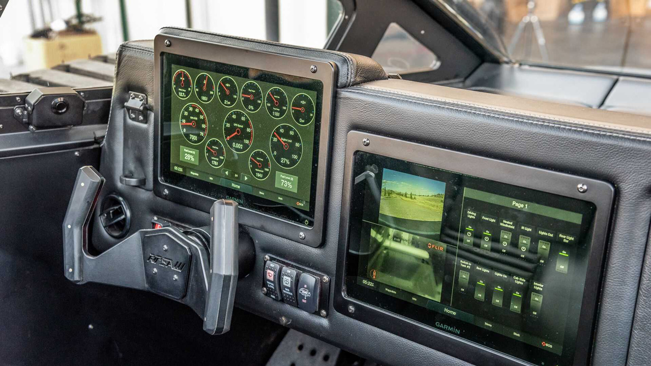 Όπως μπορείτε να δείτε και στις φωτογραφίες, το τιμόνι του είναι αρκετά ιδιαίτερο, ενώ υπάρχουν και δύο οθόνες 12 ιντσών η καθεμία, οι οποίες προέρχονται από την εταιρεία Garmin. Η πρώτη εμφανίζει πληροφορίες σχετικά με την οδήγηση και η δεύτερη μόνο σύστημα infotainment δεν μπορεί να χαρακτηριστεί, αφού ο σκοπός της ύπαρξής της είναι να απεικονίζει τα πλάνα από τις εξωτερικές κάμερες. Εννοείται ότι υπάρχουν επιπλέον θερμικές κάμερες με εύρος θέασης 360 μοιρών.