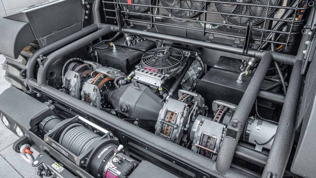 Τα καθίσματα είναι της εταιρείας Recaro και οι δερμάτινες επενδύσεις δημιουργούν ένα πολυτελές κλίμα που δεν αρμόζει σε τανκ. Όσο για τα μηχανικά μέρη, κάτω από το καπό έχουμε έναν θηριώδη V8 turbodiesel κινητήρα χωρητικότητας 6,6 λτ., ο οποίος αποδίδει 800 ίππους και 2.033 Nm ροπής. Κάτι τέτοιο, επιτρέπει στο όχημα των 4,5 τόνων να κινηθεί με ταχύτητα που αγγίζει οριακά τα 100 χλμ./ώρα.