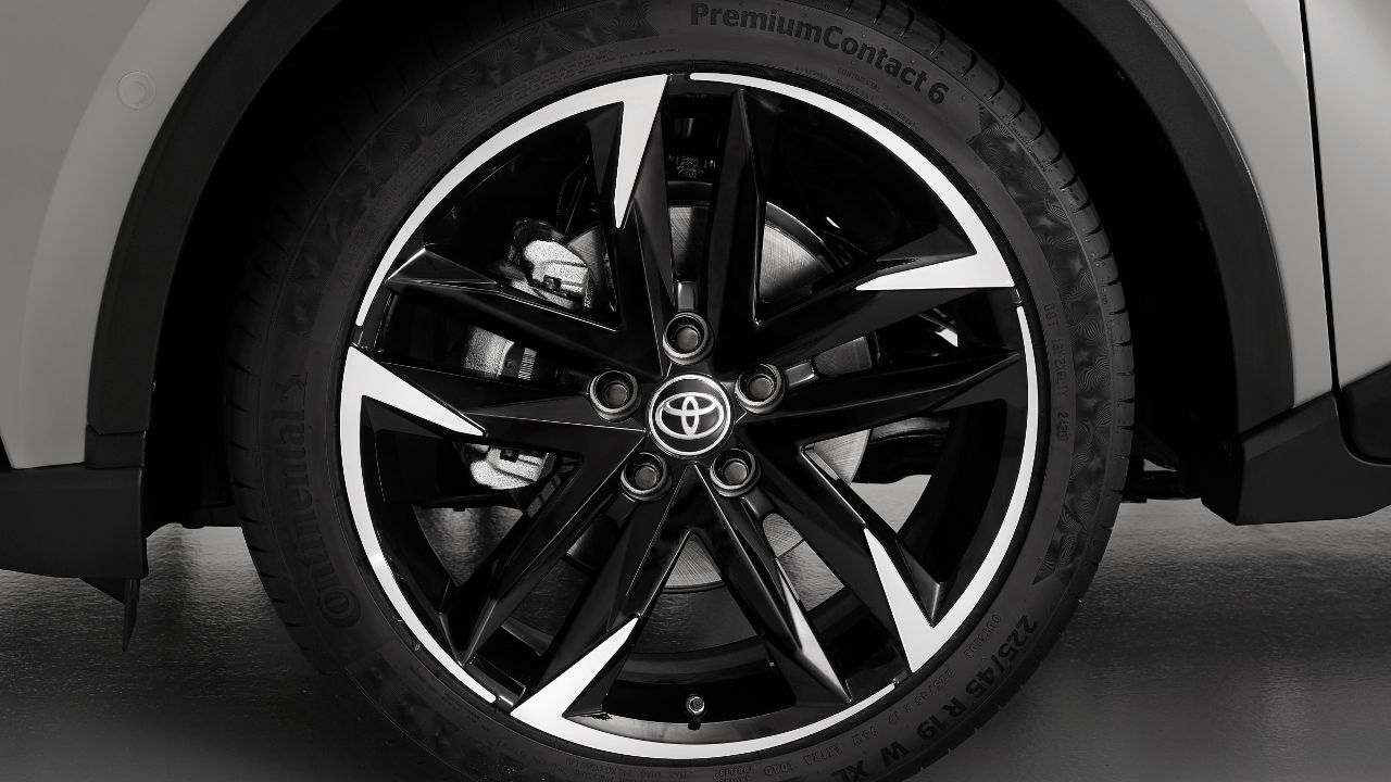 Εξωτερικά οι προσθήκες εντοπίζονται στα μαύρα πλαίσια των εμπρός φωτιστικών σωμάτων αλλά και το σήματος στη μάσκα του CH-R με το κάτω μέρος του εμπρός προφυλακτήρα να είναι εδώ μαύρο γυαλιστερό, ενώ μαύρα γυαλιστερά ένθετα βλέπουμε επίσης στις πόρτες και τα μαρσπιέ. Οι ενδιαφερόμενοι έχουν εννέα διαφορετικές επιλογές για τη δύο τόνων βαφή του αμαξώματος του CH-R GR Sport αλλά και μία που προσφέρεται αποκλειστικά σε αυτό το μοντέλο της ιαπωνικής εταιρίας με γκρι βαφή και μαύρη οροφή. Την εικόνα συμπληρώνουν οι νέας σχεδίασης ζάντες των 19 ιντσών που φέρουν επίσης νέα ελαστικά (Continental Premium Contact 6), τα οποία ζυγίζουν λιγότερο από τα ελαστικά που χρησιμοποιεί η Toyota στις 18άρες ζάντες του μοντέλου της και προσφέρουν παράλληλα υψηλότερα επίπεδα πρόσφυσης.