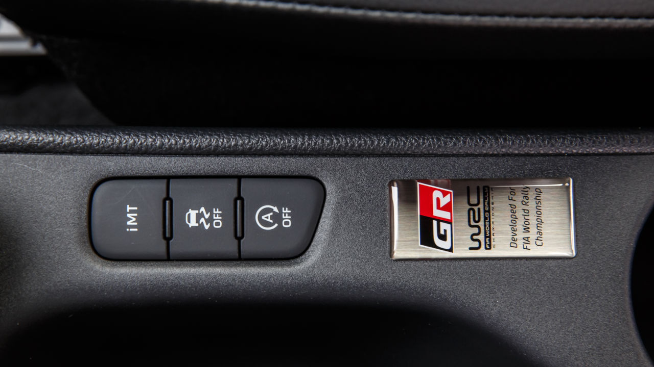 Στο εσωτερικό έχουμε αλλαγές ουσίας ώστε ο οδηγός να απολαμβάνει μια καλύτερη θέση οδήγησης σε όλα τα επίπεδα. Ο επιλογέας των ταχυτήτων βρίσκεται εδώ ψηλότερα κατά 50 χλστ. έναντι των στάνταρ Yaris και πιο κοντά στο τιμόνι και το χειρόφρενο είναι μηχανικό για… ευνόητους λόγους. Όταν χρησιμοποιείται ο πίσω άξονας απεμπλέκεται από την 4κίνηση. Παράλληλα τα σπορ καθίσματα είναι νέα και αγκαλιάζουν πιο αποτελεσματικά το σώμα προσφέροντας υψηλότερα επίπεδα υποστήριξης για τον κορμό αλλά και τη λεκάνη.