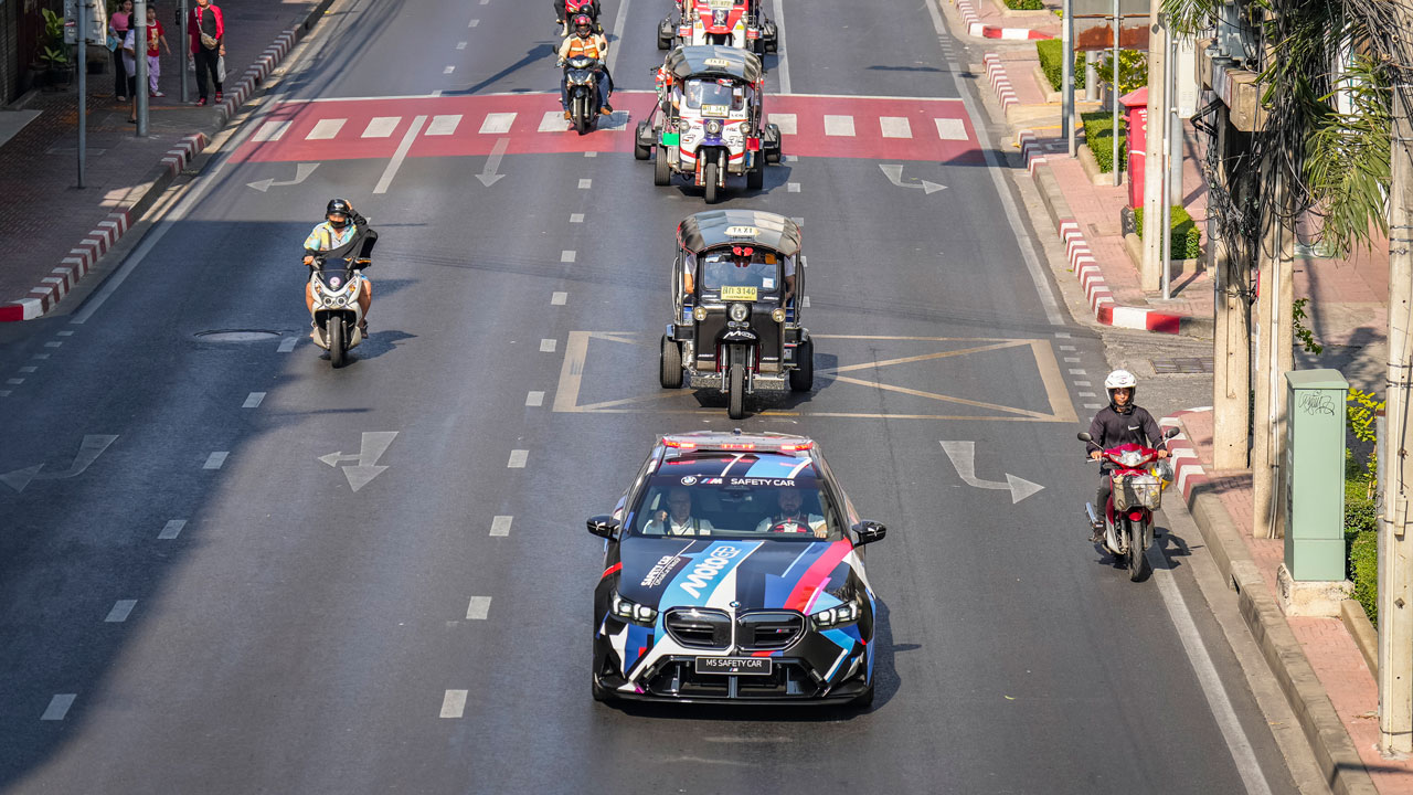 Στο επίκεντρο της εκδήλωσης βρέθηκε η νέα BMW M5 Touring MotoGP Safety Car, η οποία το 2025 έρχεται να πλαισιώσει την BMW M5 MotoGP Safety Car με στόχο να ηγηθεί του στόλου των αυτοκινήτων ασφαλείας στο πιο συναρπαστικό άθλημα στον κόσμο. Η Έναρξη της Σεζόν του MotoGP στην πρόσφατα αναπτυγμένη περιοχή One της Μπανγκόκ προσέφερε το ιδανικό περιβάλλον για την επίσημη παρουσίαση του νέου Αυτοκινήτου Ασφαλείας.