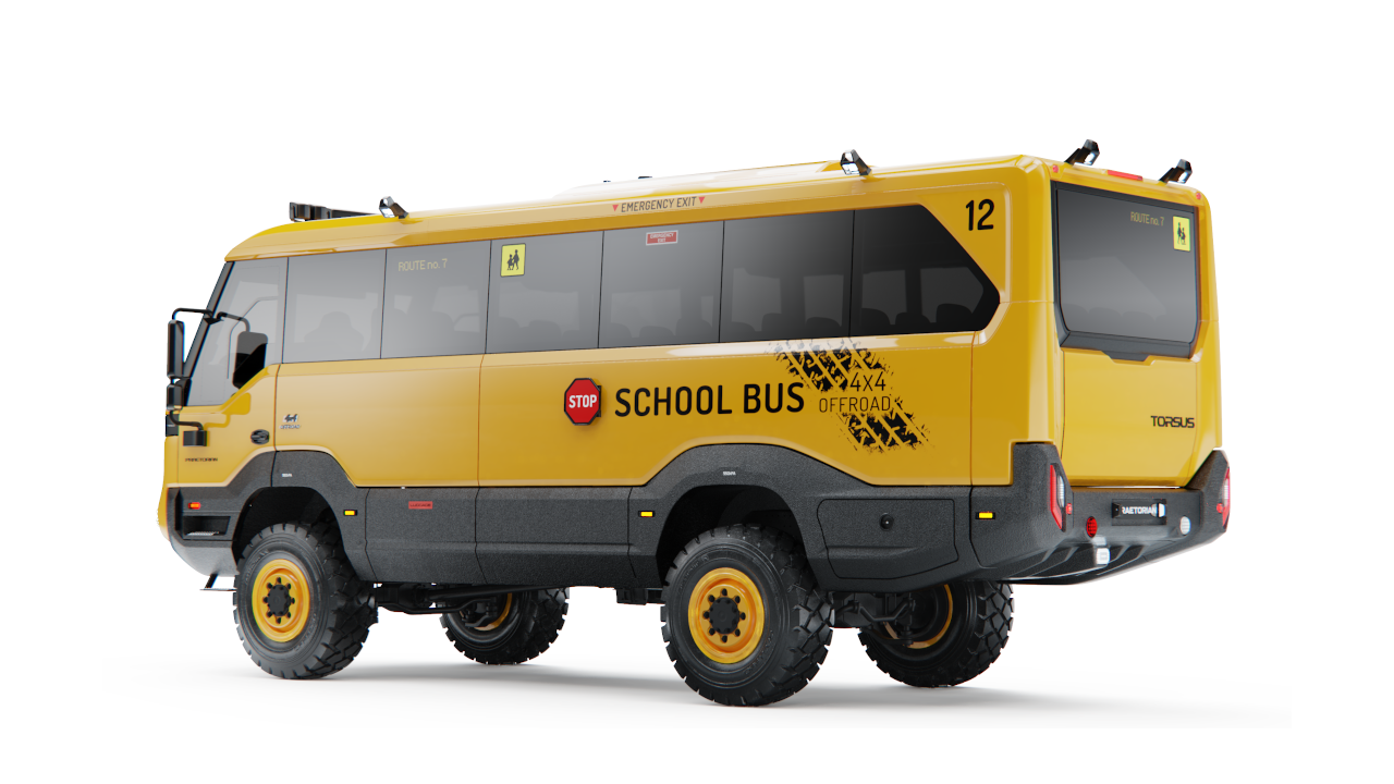 Η νεοσύστατη σλοβακική Torsus εξειδικεύεται στην δημιουργία λεωφορείων που μπορούν να οδηγούνται απροβλημάτιστα σε κακοτράχαλο τερέν με στόχο να μεταφέρουν με ασφάλεια πολυάριθμο προσωπικό σε δύσβατες περιοχές, όπως για παράδειγμα είναι ένα ορυχείο. Έχοντας ως βάση το extreme 4κίνητο λεωφορείο τους οι Σλοβάκοι δεν θα μπορούσαν παρά να παρουσιάσουν και μια “σχολική” έκδοση του. Αν και δεν είμαστε σίγουροι σε ποιο σχολείο του κόσμου μπορεί να χρησιμεύσει (η τιμή του ξεκινά από τα 174.000 ευρώ) οι μαθητές που θα μεταφέρει αναμένεται να το λατρέψουν όπως ένα παγωτό χωνάκι σε μια καυτή μέρα του καλοκαιριού.