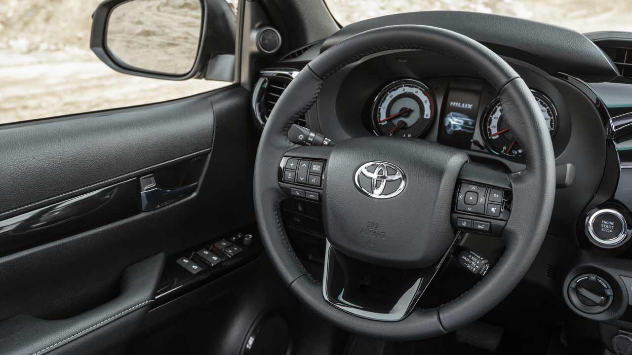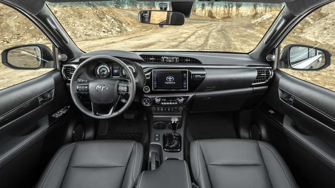 Στο εσωτερικό του, το Toyota Hilux Special Edition έχει να επιδείξει ένα κατάμαυρο εσωτερικό, σαφώς βελτιωμένη ποιότητα υλικών. Αυτό το οφείλει στην ύπαρξη χρωμίου και γυαλιστερών πλαστικών Piano Black και στις δερμάτινες επενδύσεις σαλονιού. Ο πίνακας οργάνων είναι ανασχεδιασμένος, το κλειδί είναι διαφοροποιημένο από αυτό των υπόλοιπων Hilux, ενώ στο κέντρο του ταμπλό δεσπόζει η έγχρωμη οθόνη αφής για το σύστημα πολυμέσων.