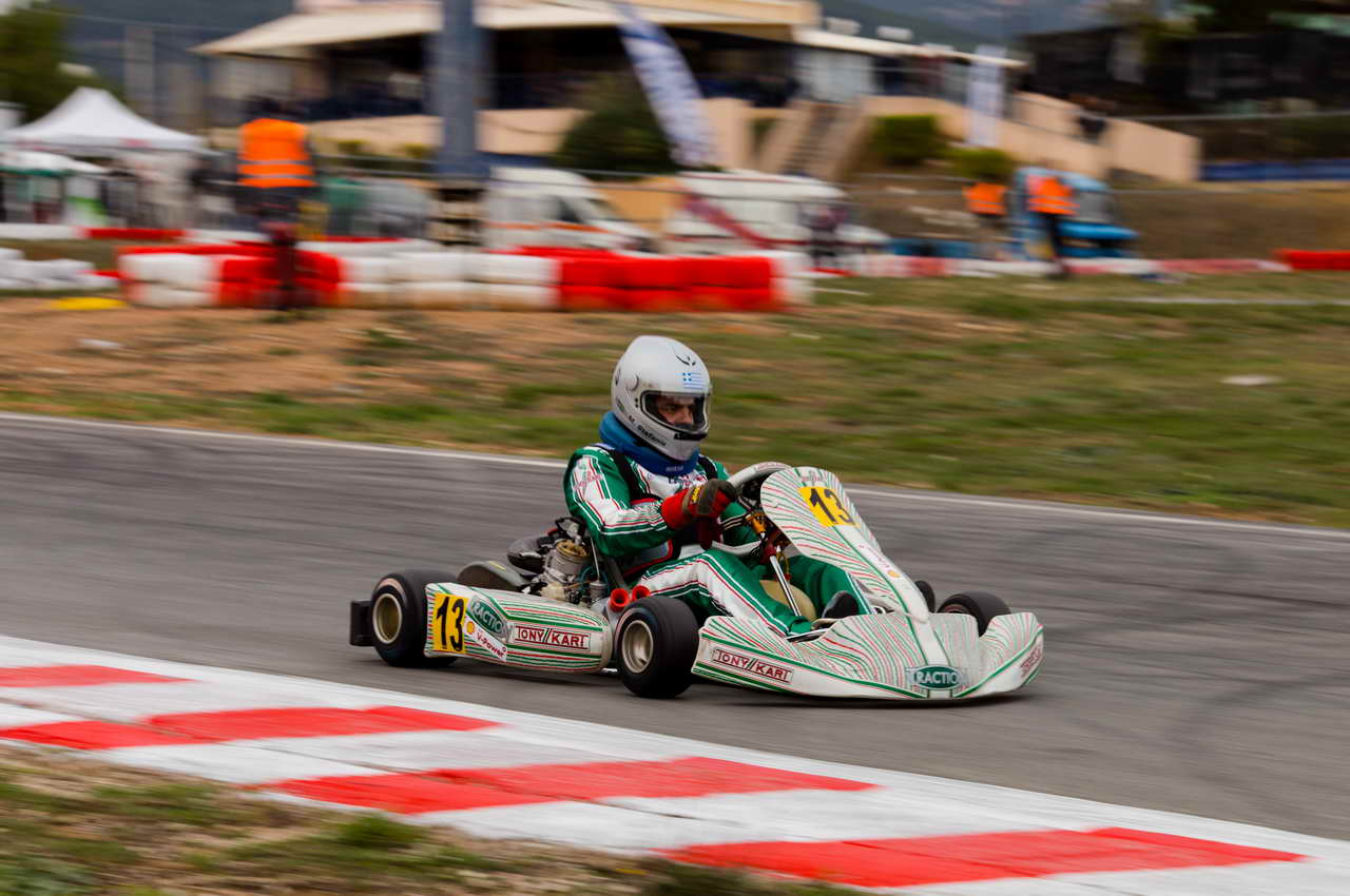 Μεγάλο το διάστημα της αποχής και πιάνομαι κυριολεκτικά στον ύπνο καθώς η 6η θέση στα χρονομετρημένα ήταν το αναμενόμενο αποτέλεσμα μετά από μια άκρως συντηρητική οδήγηση. Λίγο οι προτροπές του Κώστα, λίγο η φλόγα της ανταγωνιστικότητας με ξυπνούν και η εκκίνηση στον Α τελικό είναι γεγονός. Απίστευτα τα συναισθήματα όταν στρίβεις στην 1η στροφή μαζί με άλλα καρτ και τις ρόδες σχεδόν να ακουμπούν, αίσθηση που την είχα ξεχάσει μετά από τόσα χρόνια αποχής. Σύντομα βρίσκομαι στην 2η θέση, όμως μια λάθος εκτίμηση με ρίχνει πάλι στην 6η θέση όπου και τερματίζω. Όμως το παιχνίδι όλο παίζεται στον Β τελικό όπου το αποτέλεσμα αυτού του αγώνα μετράει για το βάθρο. Πιο ήρεμη και συγκεντρωμένη οδήγηση, ώστε να εκμεταλλευτώ στο έπακρο τις δυνατότητες του σασί της Tony και το εντυπωσιακά δυνατό μοτέρ της Vortex. Ύστερα από μια όμορφη μάχη με τον Αντώνη Καραγεωργίου η γραμμή του τερματισμού με βρίσκει στην 3η θέση, πετυχαίνοντας μια αξιοπρεπέστατη εμφάνιση.