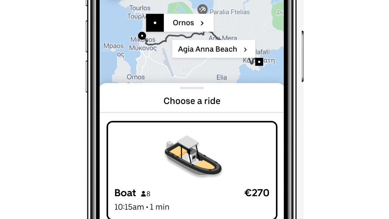 Η υπηρεσία Uber Boat αποτελεί μια κατά παραγγελία λύση μετακίνησης που λειτουργεί από τοπικούς αδειοδοτημένους φορείς και είναι διαθέσιμη μέσω της εφαρμογής της Uber. Οι χρήστες της εφαρμογής μπορούν εύκολα και αξιόπιστα να κάνουν κράτηση για εκδρομές με ταχύπλοο σκάφος με το πάτημα ενός κουμπιού.