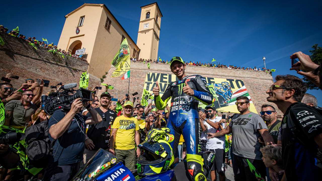 O πολυπρωταθλητής πήρε τη μοτοσικλέτα του, Yamaha R1, και έκανε μια βόλτα στον τόπο που μεγάλωσε. Οι συμπατριώτες του τον υποδέχθηκαν θερμά, με τον ίδιο να τους επιστρέφει την αγάπη. Το δέσιμο του Valentino Rossi με τον τόπο του, όπου διατηρεί και ένα όμορφο ράντσο, είναι γνωστό. Καθώς η πίστα του Misano βρίσκεται κοντά στην Tavullia όπου μεγάλωσε ο “Γιατρός”, ουσιαστικά τον αντιμετωπίζει ως αγώνα εντός έδρας.