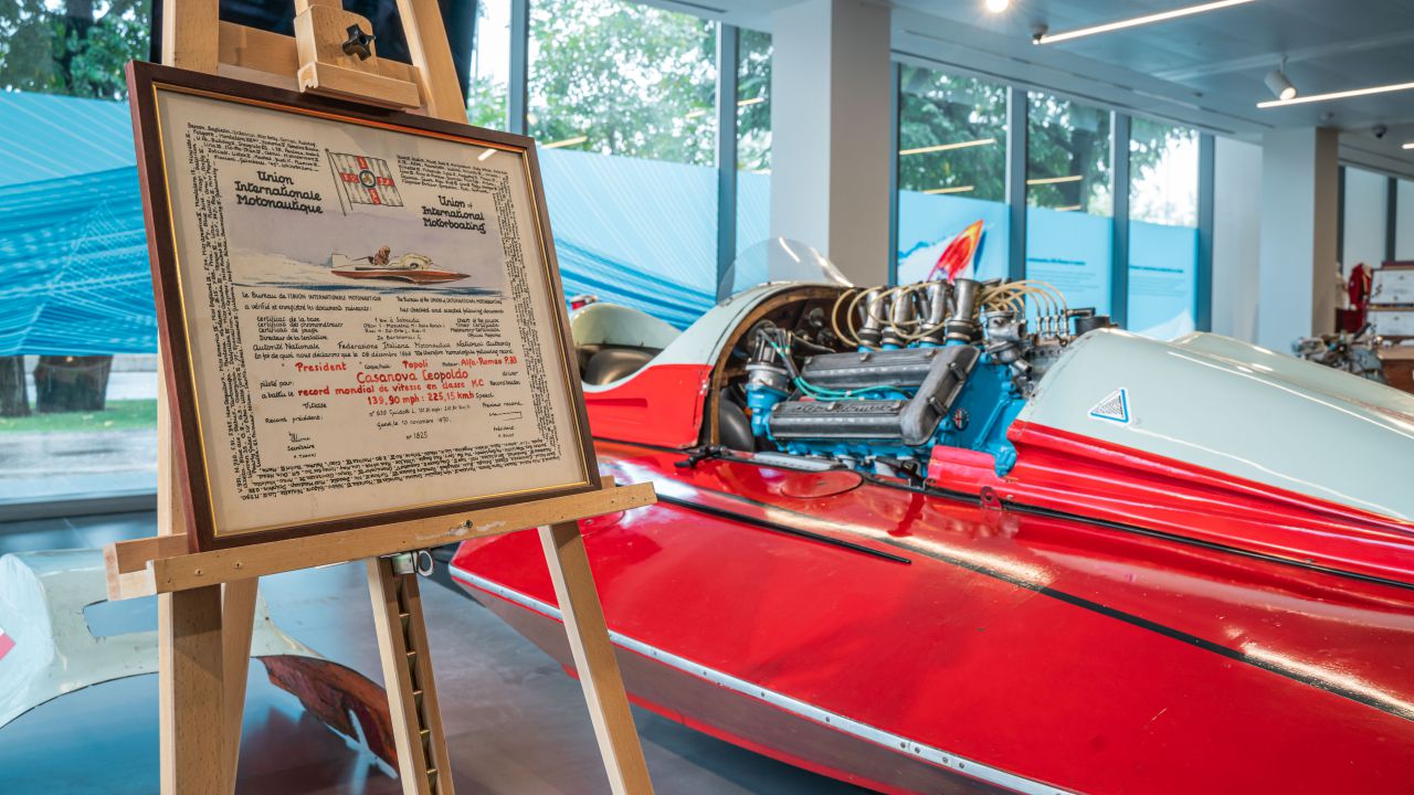Τα εννέα σκάφη που βρίσκονται στην έκθεση, έχουν κατακτήσει στο παρελθόν 11 Παγκόσμια Ρεκόρ, 6 Παγκόσμια Πρωταθλήματα, 7 Ευρωπαϊκά Πρωταθλήματα και 9 Ιταλικά Πρωταθλήματα. Σημαντικό ρόλο σε αυτό έπαιξε το πιο θρυλικό σκάφος. Πρόκειται για το “Arno II”, το οποίο κατασκευάστηκε το 1946. Ο κινητήρας του άσσου της F1, Juan Manuel Fangio, χάρισε στο σκάφος και ένα ρεκόρ ταχύτητας.