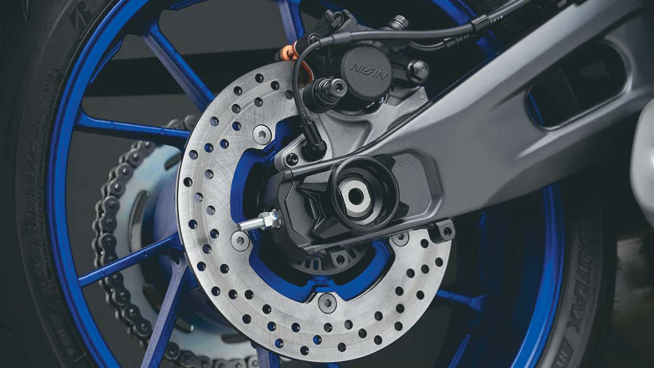 Η Yamaha κινείται ένα βήμα πιο κοντά σε αυτή τη χρήση, εμφανίζοντας το νέο της μοντέλο σε περιβάλλον πίστας, τονίζοντας όλα τα σχετικά του χαρακτηριστικά. Πλήρως ρυθμιζόμενο ανεστραμμένο πιρούνι της ΚΥΒ είναι μια επιλογή που δηλώνει ξεκάθαρα τον sport προορισμό και όχι μια απλή καθημερινή μοτοσυκλέτα με sport look. Για το πίσω μέρος έχει σχεδιαστεί κατάλληλα το μοχλικό του monocross, ενώ το αμορτισέρ είναι και πάλι της ΚΥΒ.
