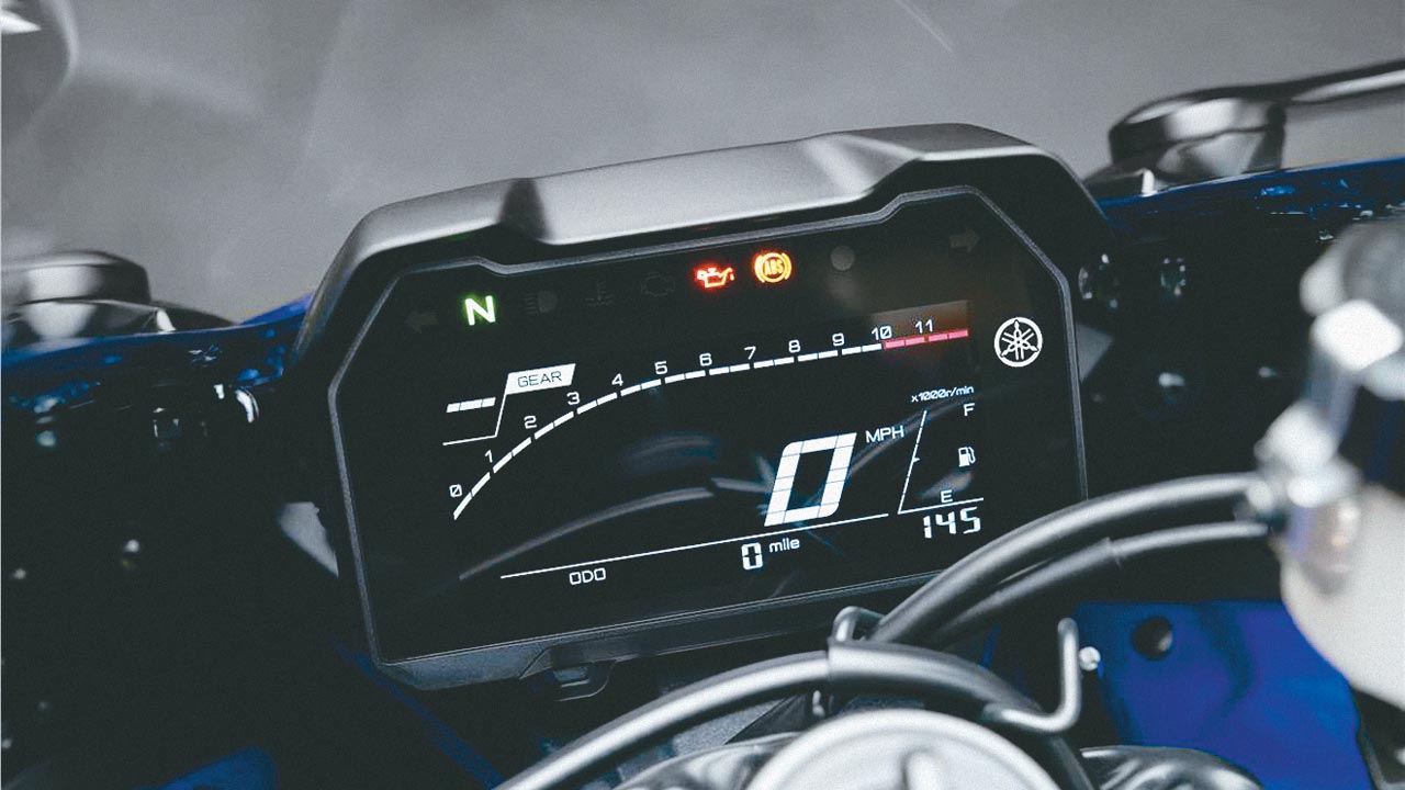 Οι πληροφορίες στην LCD οθόνη είναι προσανατολισμένες στον σπορ χαρακτήρα, με σκούρο φόντο και ευδιάκριτους χρωματισμούς. Ηλεκτρονικά βοηθήματα δεν περιλαμβάνονται στο πακέτο του R7, ωστόσο είναι αμφίβολο ότι χρειάζονται. Ίσως μια επιλογή αποσύνδεσης του ABS να ήταν χρήσιμη στην πίστα, αλλά δεν το επιτρέπουν οι προδιαγραφές.