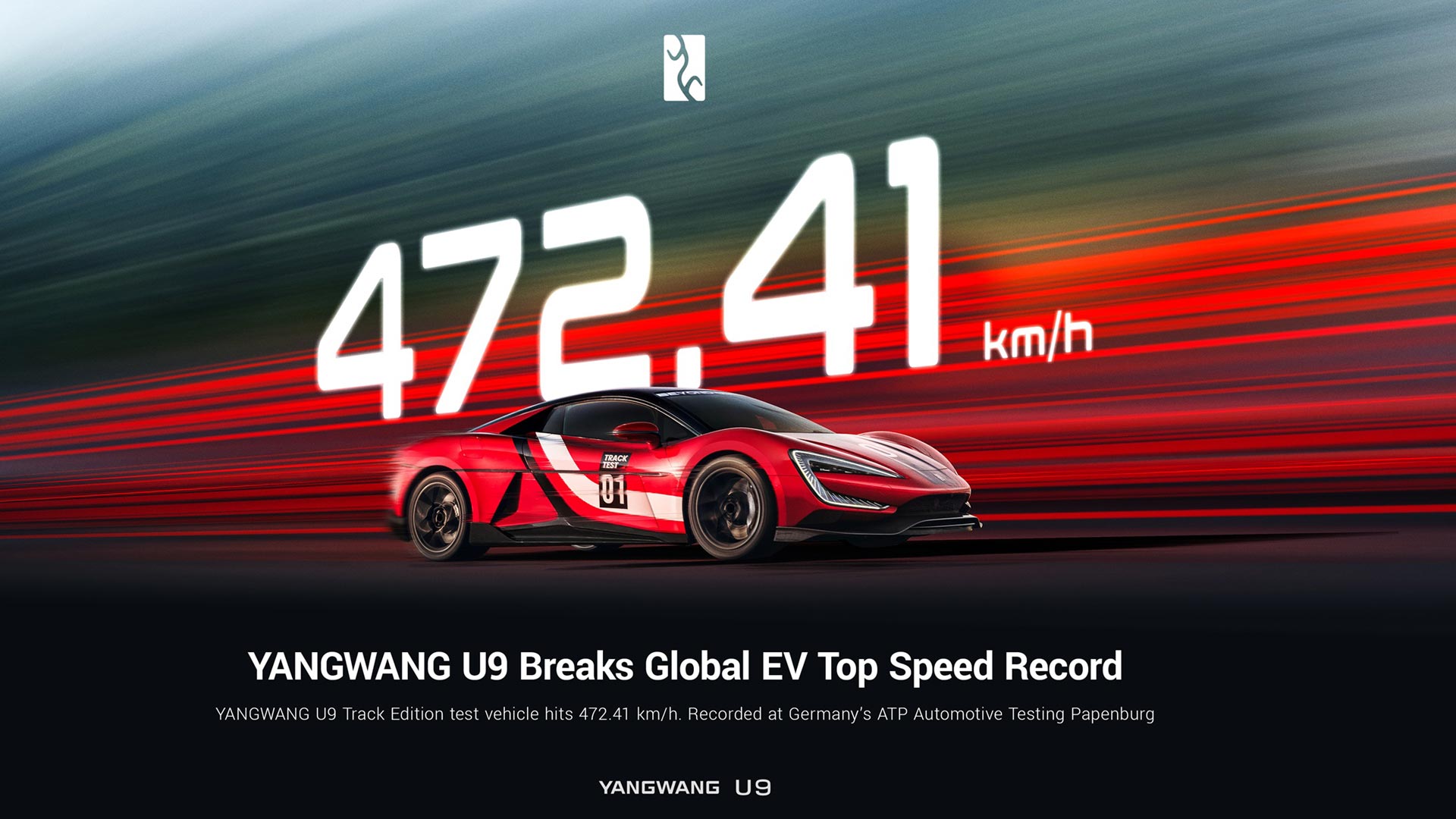Η YANGWANG, η κορυφαία premium μάρκα της BYD, κατέγραψε νέο παγκόσμιο ρεκόρ τελικής ταχύτητας για ηλεκτρικά οχήματα (EV), φτάνοντας  τα 472,41 χλμ./ώρα στην πίστα δοκιμών ATP (Automotive Testing Papenburg) στη Γερμανία. Το επίτευγμα σημειώθηκε με το πιο πρόσφατο supercar U9 Track Edition της YANGWANG, με αποτέλεσμα να αναδειχθεί το ταχύτερο EV στον κόσμο.