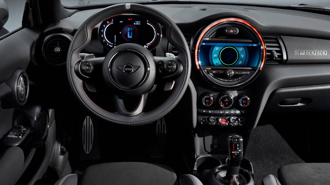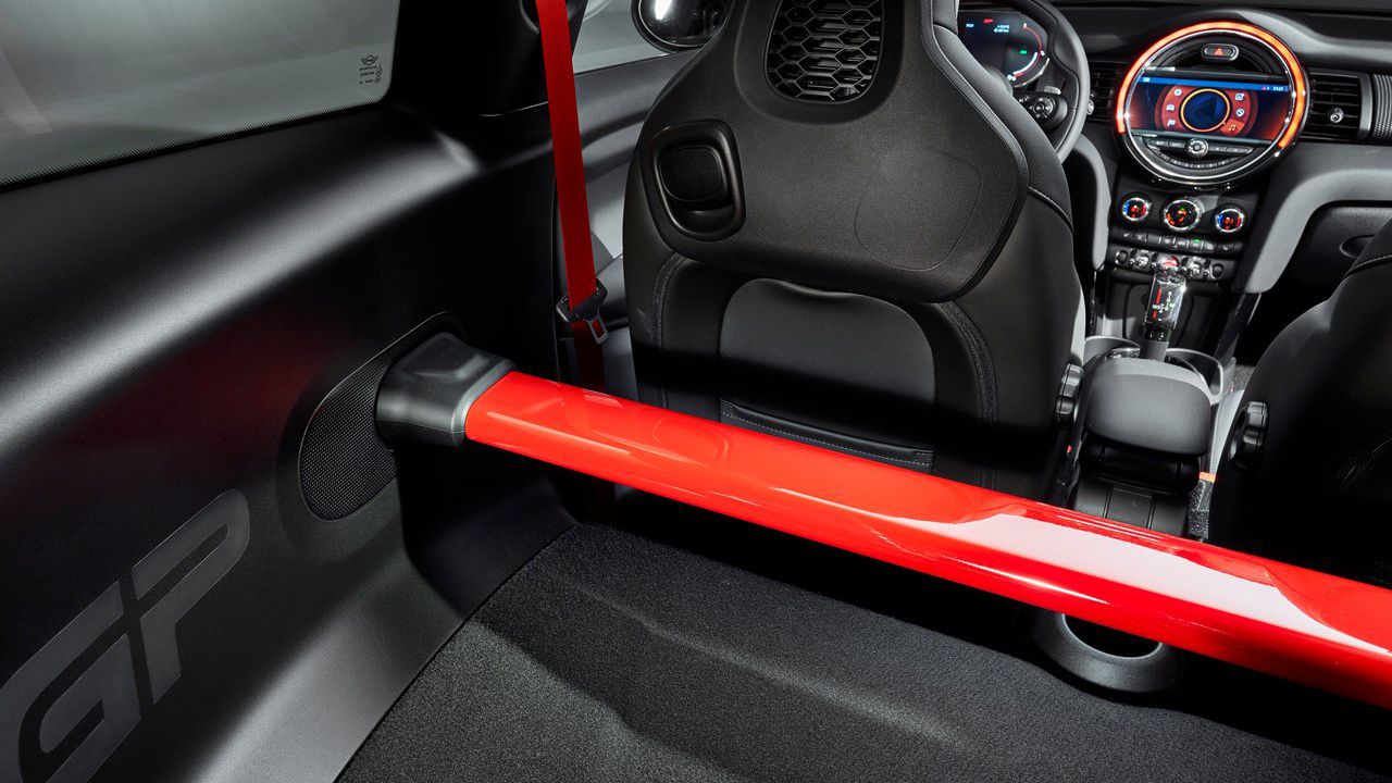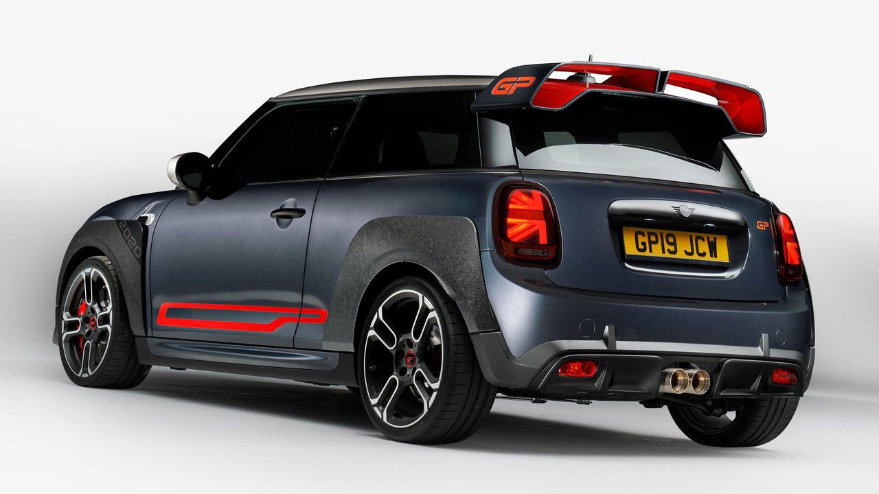 Άλλα εξωτερικά στοιχεία που το διαφοροποιούν από τα υπόλοιπα Mini είναι το carbon bodykit, οι ζάντες ελαφρού κράματος 18 ιντσών και η εντυπωσιακή αεροτομή. Στο εσωτερικό απουσιάζουν τα πίσω καθίσματα και τη θέση τους έχει πάρει μία κόκκινη αντιστρεπτική.