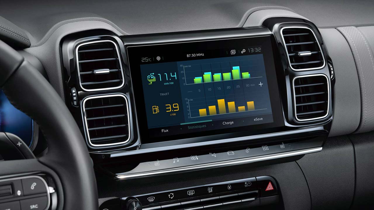 Τιμή πολύ καλή, η οποία σε συνδυασμό με το ηλεκτροποιημένο κιβώτιο ταχυτήτων e-EAT8, το οποίο μεταδίδει την κίνηση στους εμπρός τροχούς, υπόσχεται πολύ καλές επιδόσεις. Το Citroen C5 Aircross Hybrid αντλεί την ενέργειά του από μπαταρία ιόντων λιθίου (200V) χωρητικότητας 13,2 Kwh.